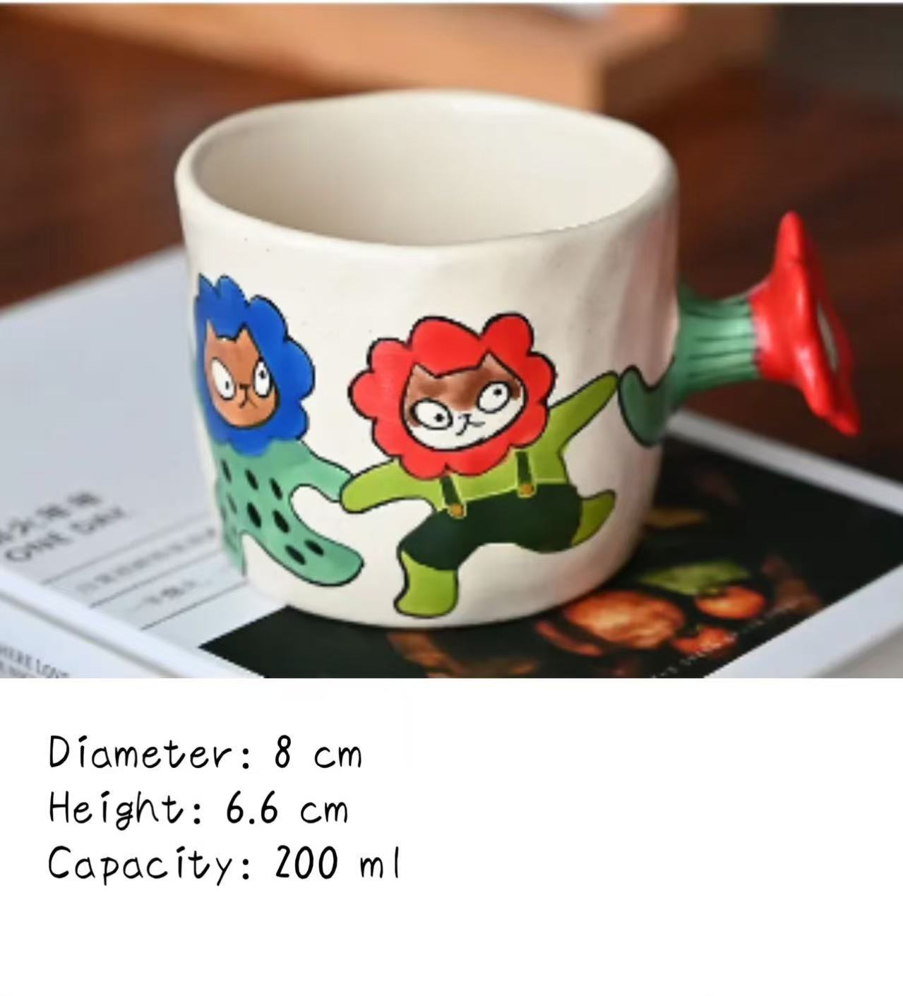 Featuring original hand-painted cat illustrations and a charming floral handle design, this cup is crafted using underglaze techniques and fired at high temperatures—beautiful, practical, and food-safe.
